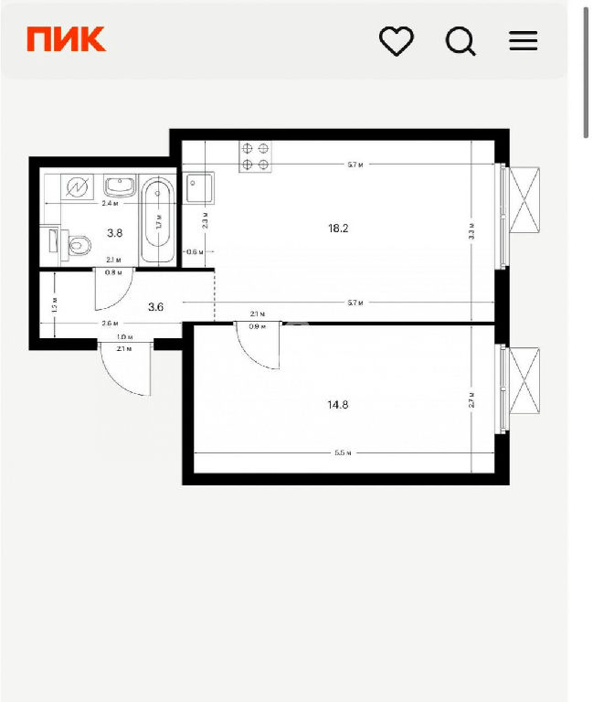 Квартира расположена на 13 этаже с хорошим видом из окон, с реально отличным ремонтом от застройщика, просторная кухня-гостиная 18 метров и спальня 15 метров.