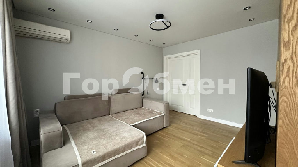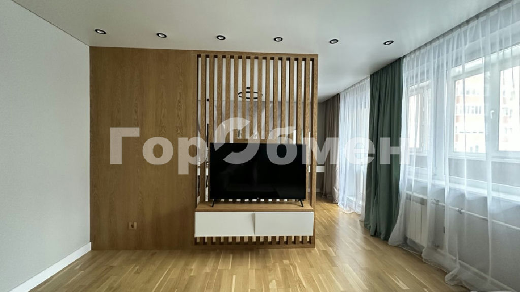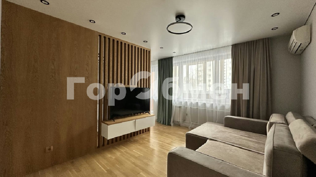 Современный ремонт в тёплых натуральных оттенках, уютная гостиная с декоративными деревянными панелями и продуманным зонированием создают атмосферу комфорта и спокойствия. Здесь всё гармонично от освещения до фактур материалов.