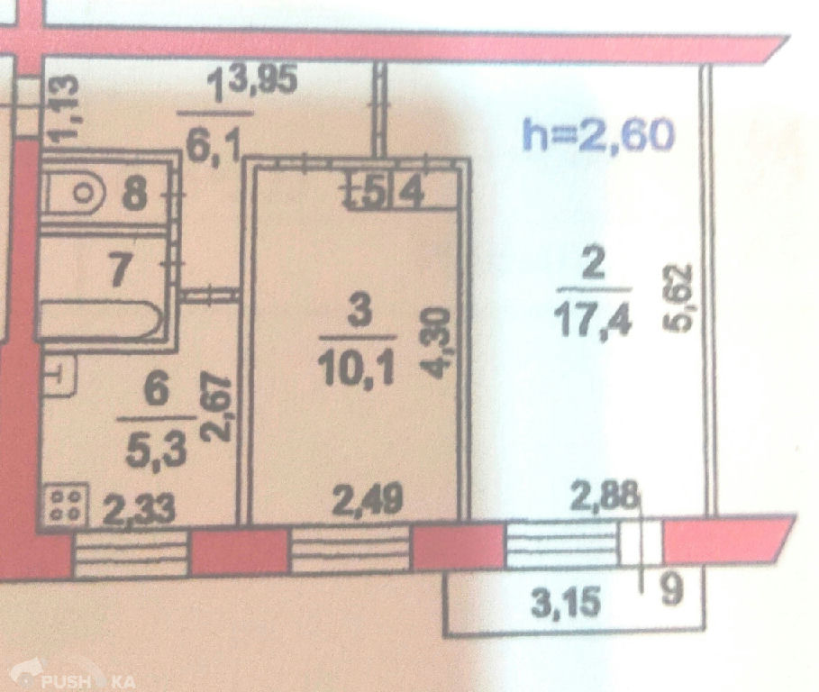 Комнаты: 17.4-10.1 м2