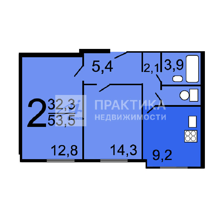 Общая: 53,5 м2